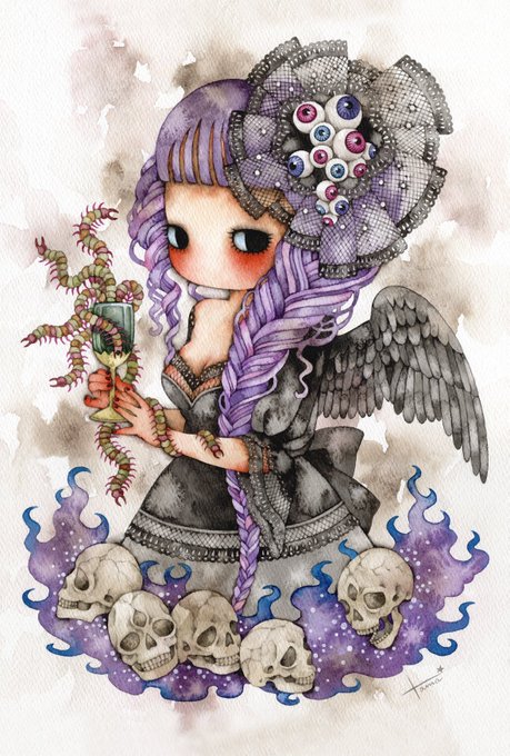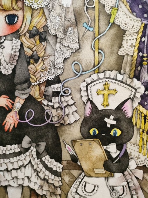 気まぐれ初期作品! 多分2007年か2008年… 球体関節人形描いたのこれが初めてだった。 当時とても好評頂けた作品で、デザフェスではポストカードやポスターが毎回完売でした😊 【Missa Pro Defunctic】 353×475 個人蔵 #透明水彩 #少女主義的水彩画家たま