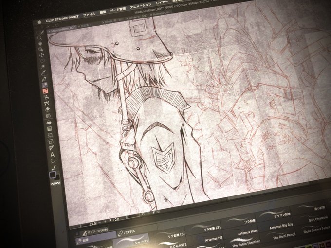 午後はまず『少女騎士団』のスピンオフを描きます。当初、少し傷んだ古いフィルム処理をかけようと思っていましたが、普通のモノクロマンガの方が“二次創作”っぽくて見た目が面白いなあ、と進めています。しかし、筆遅……。 #イラスト #絵 #絵描きさんと繫がたい #少女騎士団 #MädchenRitter