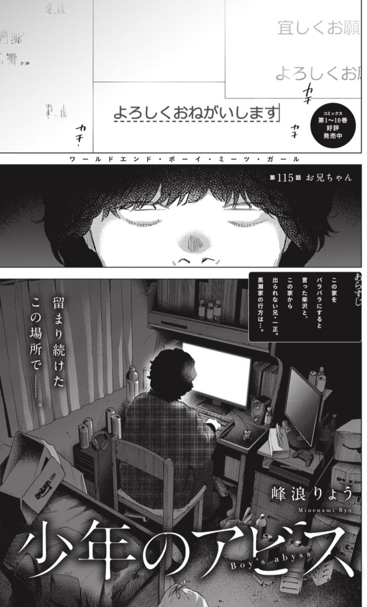 木曜ヤンジャン発売日! 『#少年のアビス』 第138話「消えゆく人」 Cカラーで掲載中です🐠🐠 全てが、嘲笑われ、摺りつぶされて、消されていく… 最新13巻は6/19(月) いよいよ来週発売です! 表紙は血塗られた紅をさす最後のヒロイン、玄 ご予約お待ちしております! s-manga.net/items/contents…