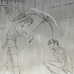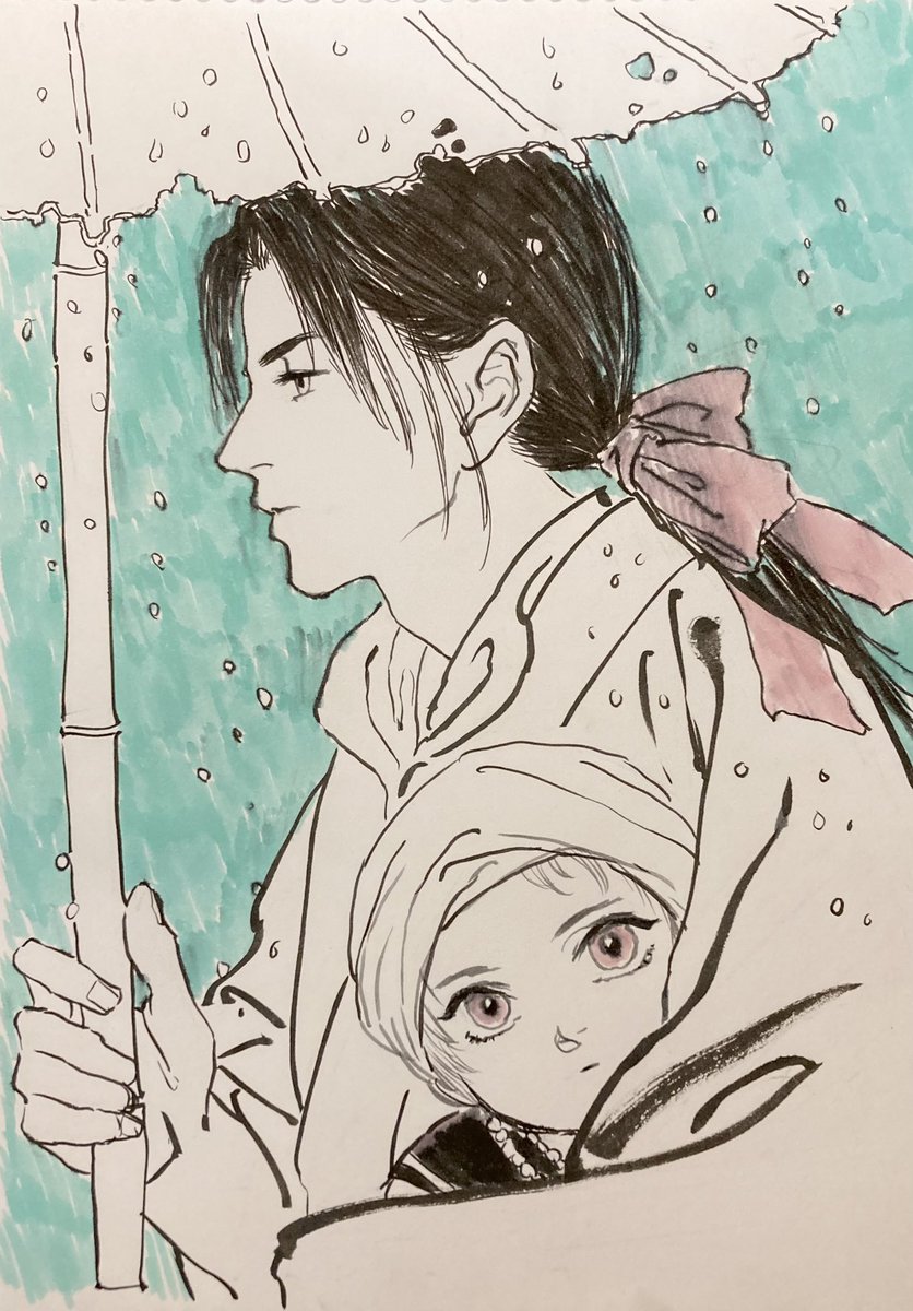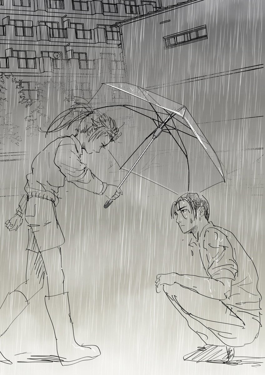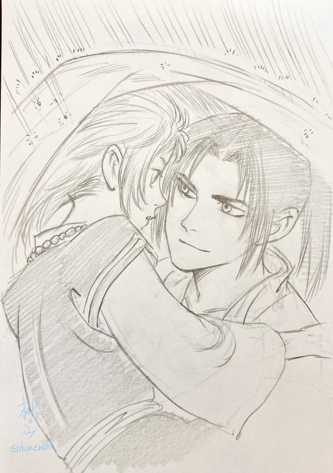 #尚六ワンドロ・ワンライ お題「雨宿り」 時間1h 六「濡れるぞ。なあ、あんた…迷子か?」 尚「……迷子って…俺は大人だぞ」 六「うん…。でもなんか、ほっとけない」 謎の現パロ、尚だけ記憶あり 大遅刻すいません!