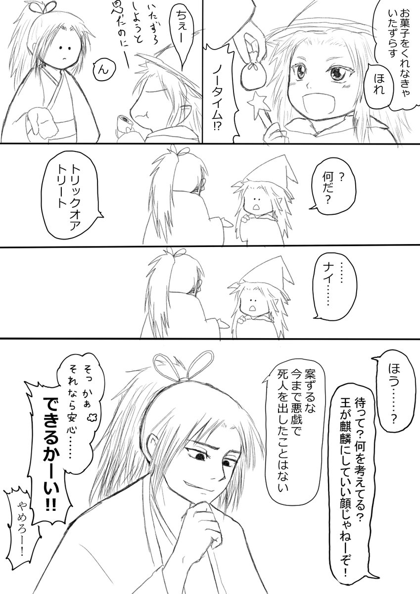 #尚六ワンドロ・ワンライ お題『ハロウィン・いたずら』🎃 時間 2.5時間 六太が蓬莱から持ってきたハロウィンパーカー(悪魔仕様)をおそろいで着てご機嫌なお二人です☺️❤️ いたずらってほどではないですが、尚隆は六太に気づかれないようにフードについてる角をガブガブしています☺️☺️☺️