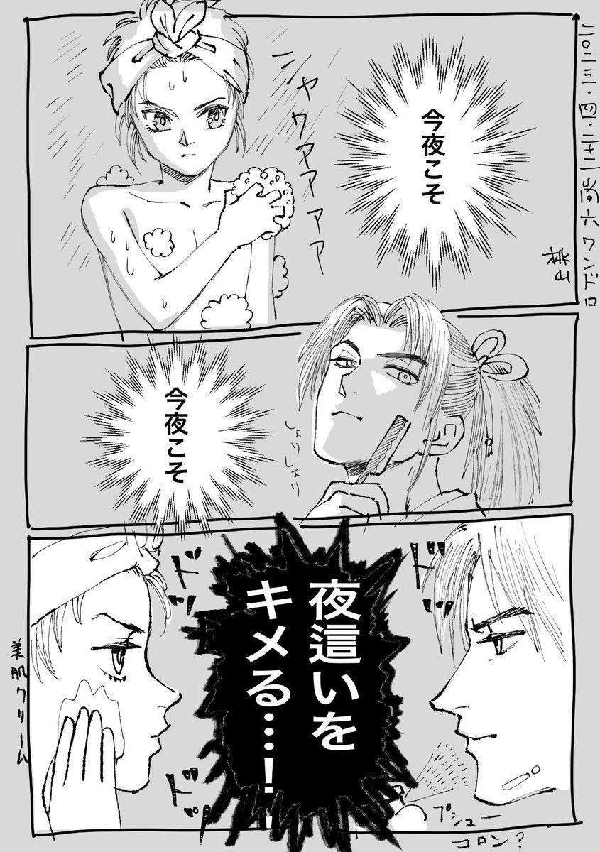 お題「お酒」「夜這い」1+2h 🦒「夜這いにきた…(酒飲みに来た!)」 🎀「…………ほう」 🦒「……?…!! ちが…ッ!酒!!酒飲みにきた!!!」 ※心の声がダダ漏れたえんたいほ #尚六ワンドロ・ワンライ
