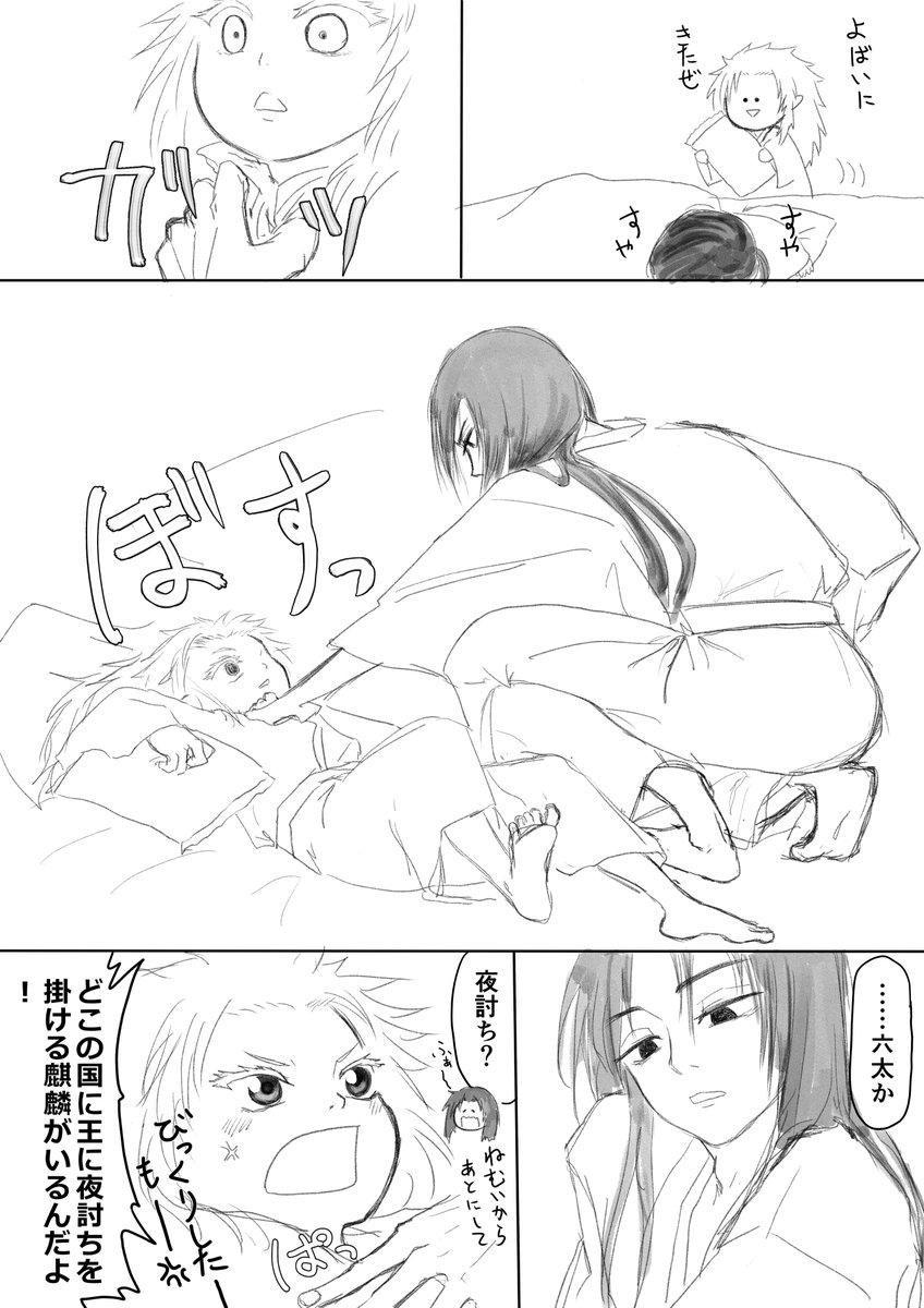 #尚六ワンドロ・ワンライ 『夜這い』2h半くらいかかった どこの国に王に夜這いを掛ける麒麟が……けっこういそう 夜討ち対策として少しの物音で目が覚める若の癖がずっと抜けない尚隆っていいな、と思いました。 あと眼が据わってるのはただ眠いだけです