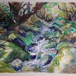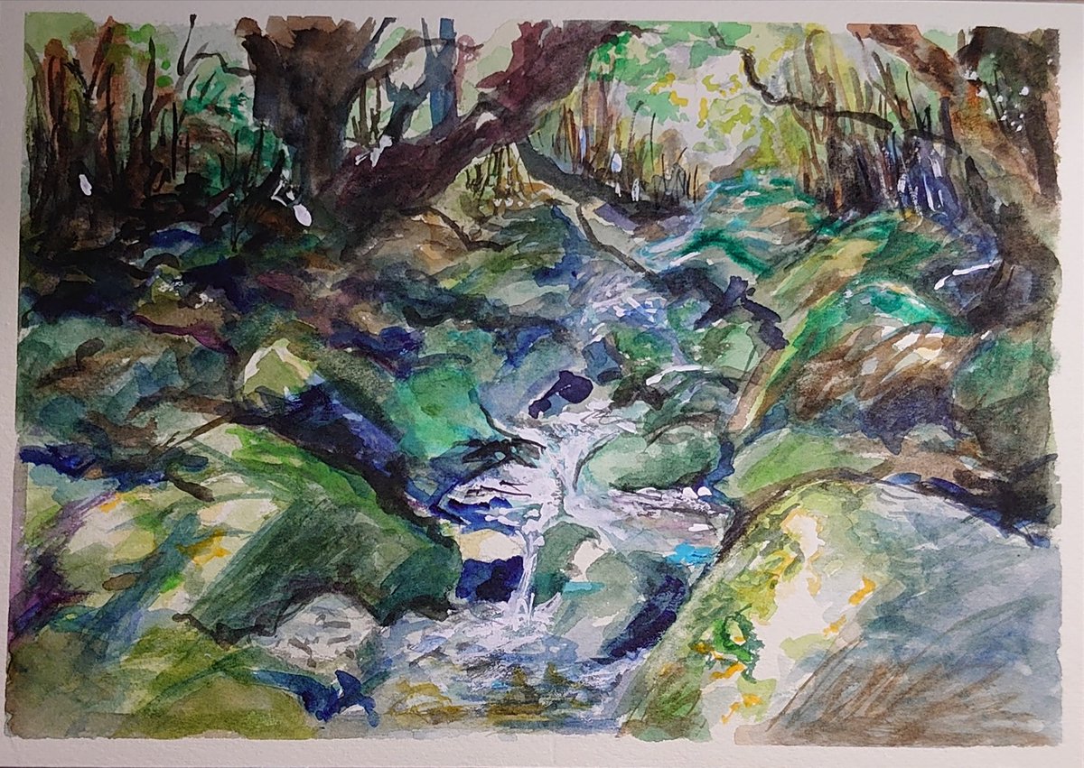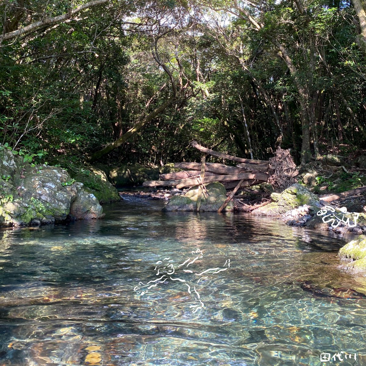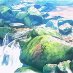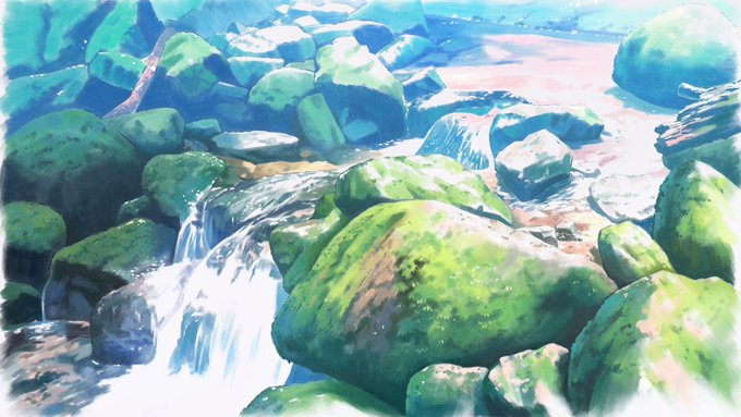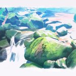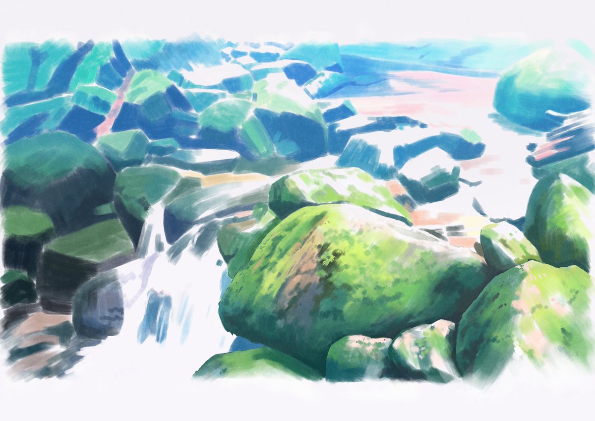 #絵描きさんと繋がりたい #イラスト好きと繋がりたい #背景 #白谷雲水 #屋久島 白谷雲水で見た川を描きました。明るい部分は白飛ばしにして軽い感じを目指しました。これで今年描いた絵は20枚になりました。