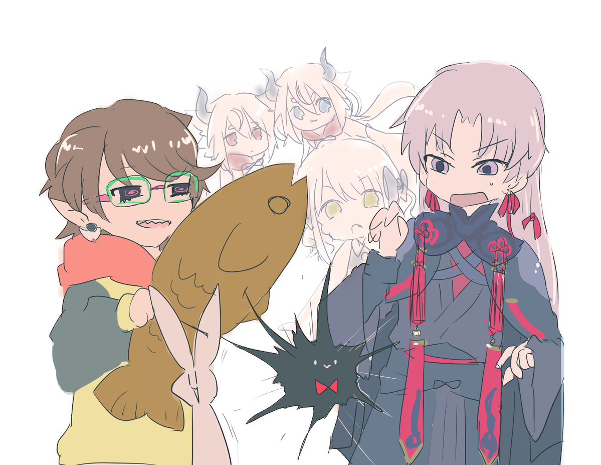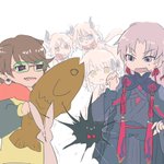 セルフFA 新曲のボーカル陣とほかクリエイター陣です 順番に、アイドル、精霊、キメラ、うさぎ、ウニ、厄神です。百鬼夜行かな? youtu.be/rOcIhtqr4XM #yuzuhart #屍野画