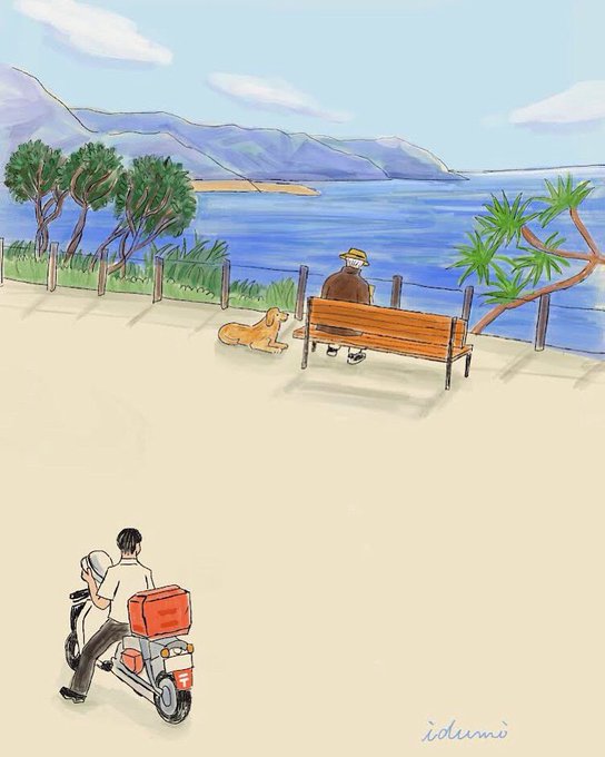 なんとなく描いてみたとです🌄 一応タケコプターで飛んでます✈ #イラスト #illustrator #adobePhotoshop #山々 #日の出 #日没 #米俵InTheSkyWithDiamonds #米俵帝国