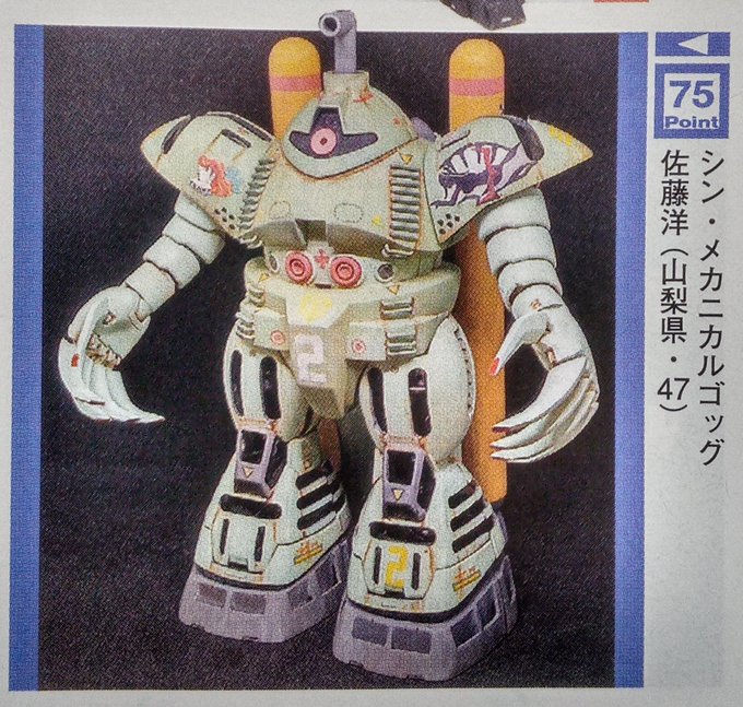 第24回全日本 #オラザク 選手権、一次通過評価を頂きました! 『シン・メカニカルゴッグ』、プラモ狂四郎でおなじみのゴム動力内蔵機構と、増尾隆幸さんのメカニカルイラストをミックスさせたイメージで仕上げました。 #山梨市プラモデル作品展示会 では、メカ機構丸出しで展示させて頂きます!! twitter.com/snufkinsnufkin…