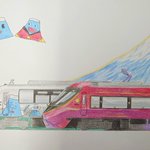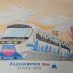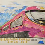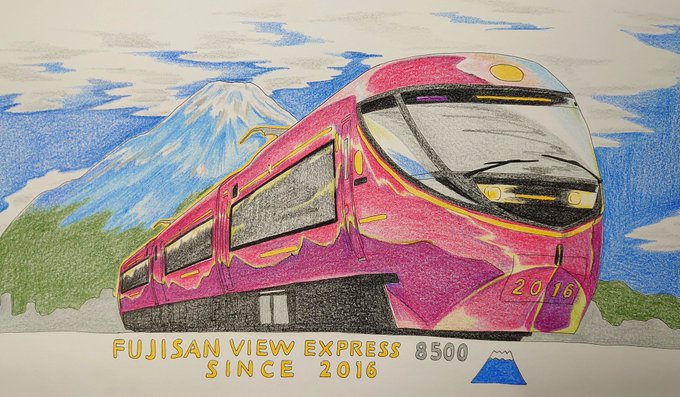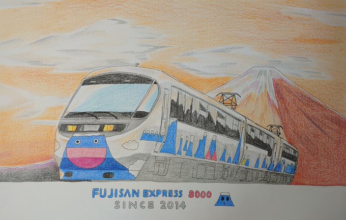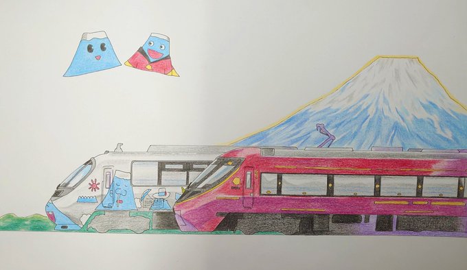 富士山と二大富士特急(フジサン特急×富士山ビュー特急)を描きました〜! 富士急公式の\フジサン君/も一緒に! #絵描きさんと繋がりたい #イラスト #山梨県 #富士山 #富士急行 #描き鉄 #絵柄が好みって人がいればいいなぁ #風景