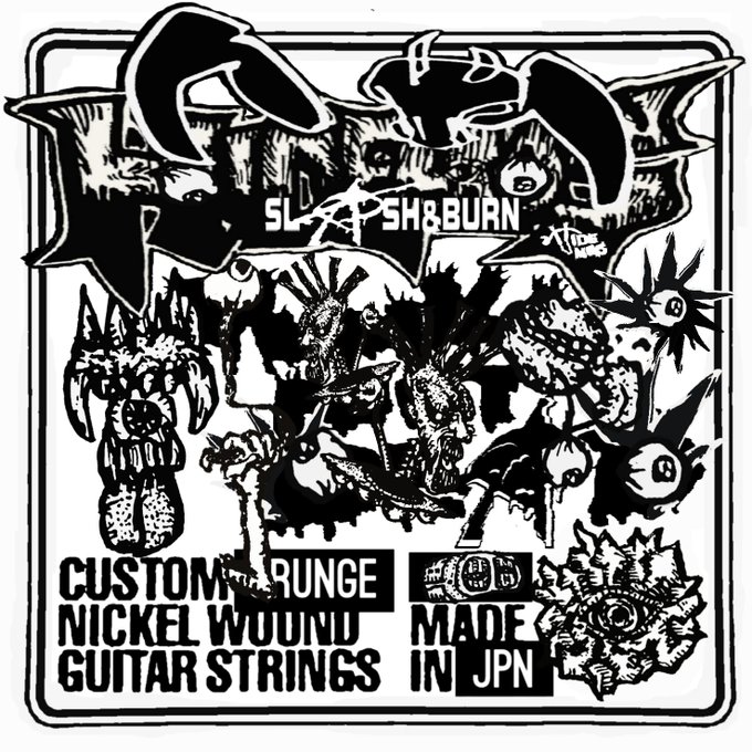 深夜2時に描きためた落書きを使ってギターの弦のパッケージ風にデザインしてみました、、(;´_ゝ`)夜更かしアカン。 #落書き好きな人と繋がりたい #イラスト #ギター #UFO #PUNK #KurtCobain #山田かまち #みうらじゅん #安斎肇 #山田五郎 #絵描きさんと繫がりたい #ヘタクラさんと繋がりたい