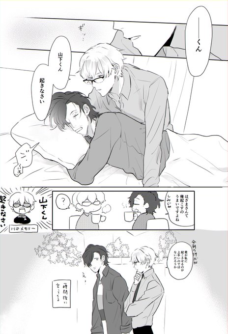 #山硲総復習ワンドロ 「季節を分かつ鬼たちの宴」増刊号とイベストから。王道すぎてお恥ずかしいですがここは外せなかったので! 初コンタクト着脱への励ましで何か撮影完成度を上げるための火がついていたりしたらそれも道夫らしく、それで流れ弾にあたる山下くんであってほしい。