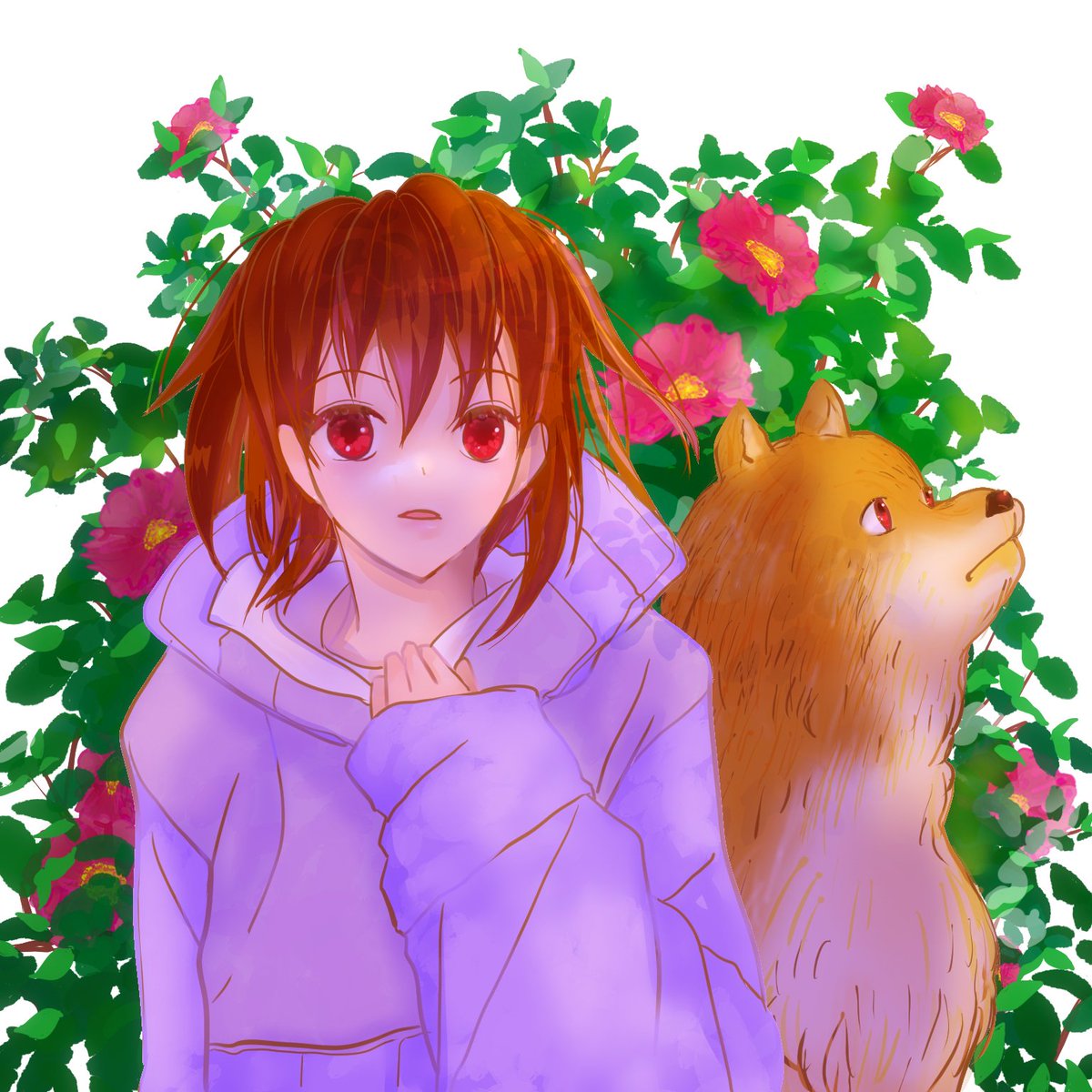 妄想わんこペス🐾となつみちゃん❤️ #冬 の #花 #山茶花 #絵描きさんと繋がりたい #イラスト好きさんと繋がりたい #絵柄が好みって人にフォローされたい #イラスト #illustration #オリジナルキャラクター #女の子 #犬