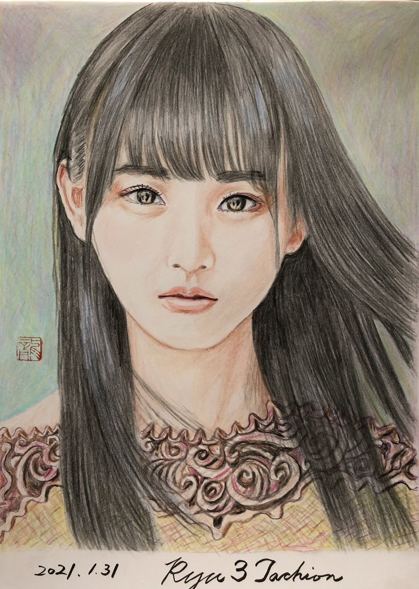#櫻坂46 #山﨑天 さん (「桜月」の衣装の時。) 元々落書き感覚で描いてましたが、そこから少し全体のバランス調整しました #イラスト練習中 #イラスト好きさんと繋がりたい #絵描きさんと繫がりたい #色鉛筆画