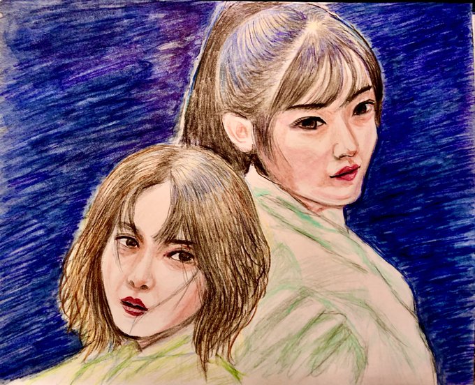 できました、#摩擦係数。 サイリウムカラーやら、理性やら野性やらを取り入れようとして頑張ったり頑張らなかったり。 あと反転したりし忘れたり😂 #sakurazaka46fanart #櫻坂46 #山﨑天 #森田ひかる #Asyouknow #坂道46ックリマン