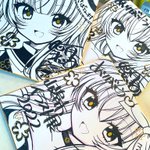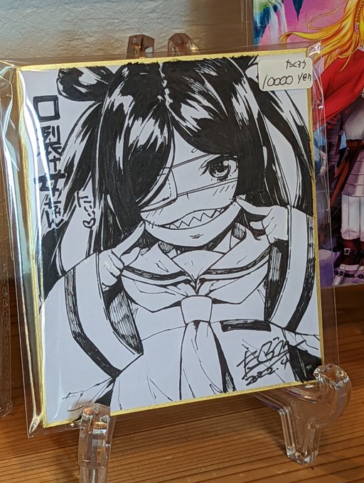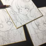交通規制がえげつないっぽいので会場が締まるギリギリに向かいたいと思います。ちなみに寝かせておいた下書きを清書して色紙は用意しました。あと彫龍のキーホルダーもあります。滑り込みでよろしくお願いします🙏 #岐阜市イラスト展2022