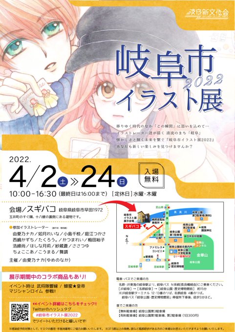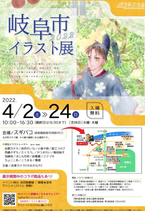 #岐阜市イラスト展2022 本日最終日🌼 4/24(日)16:00までです🌸 清流ハーフマラソンの為、12:20まで交通規制有ります。ご注意ください✨ なおしゃんはマラソン終了してから会場に向かいます✨