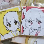 #岐阜市イラスト展2022 の物販に置いてるポストカード、最終日にナンですが、フキダシ付箋がついたものは印刷違いです。 パールかかった紙に4色印刷のノーマルタイプと、2度目の在廊で追加した白色度の高い紙に6色印刷したものです。銀色用紙のは終了してます。 見比べてみてくださいねー☺️