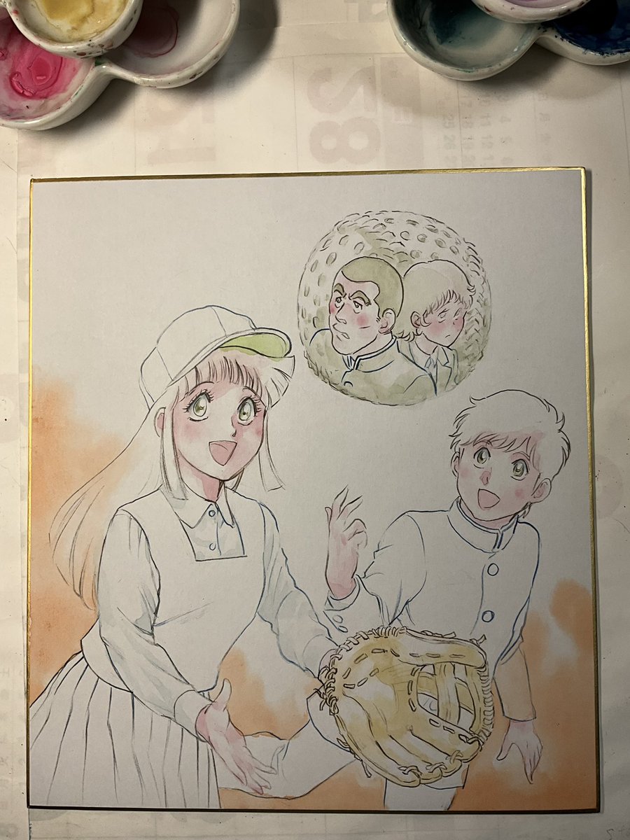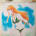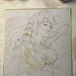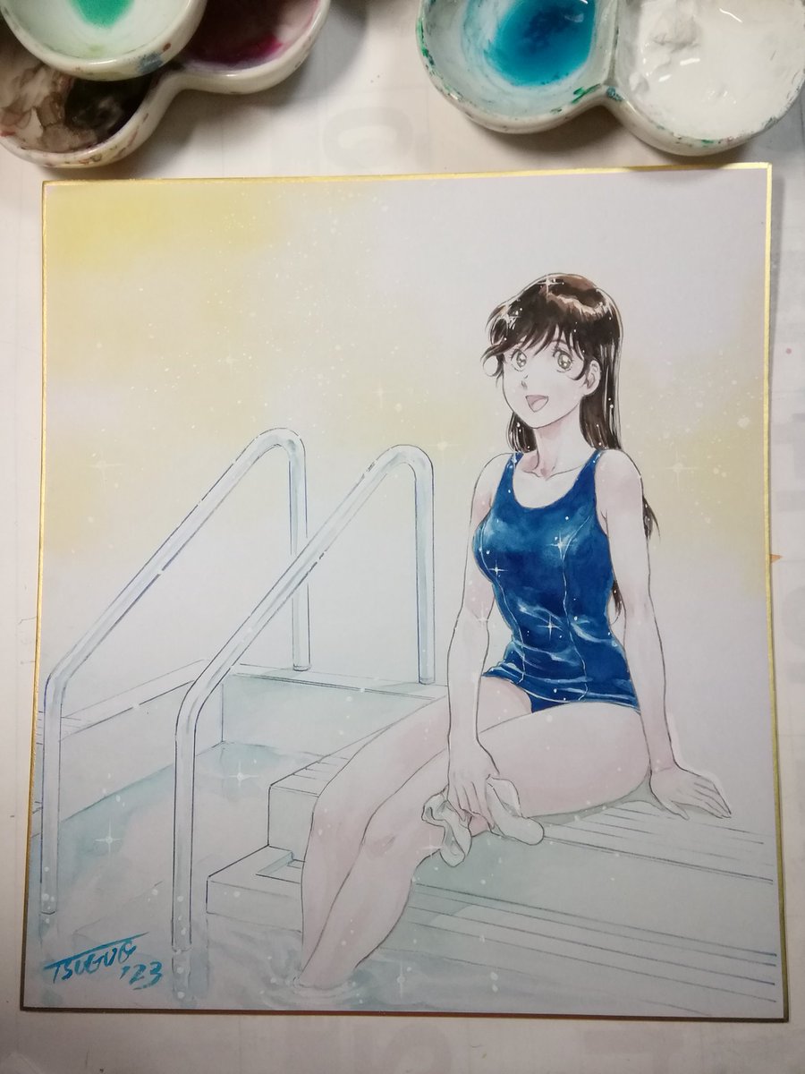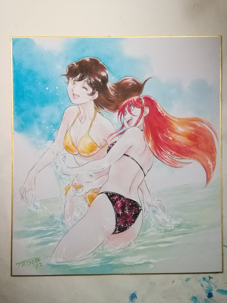 #岡崎つぐお彩色イラスト色紙 6月受注分最後の三枚の彩色完了しました。 週明けに発送手配する予定です。 ちなみに今月分からの受注は特に締切を設けませんので、ご希望の方はDMにてお声がけくださいませ。