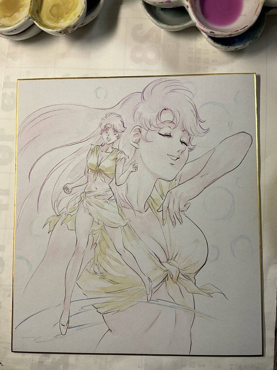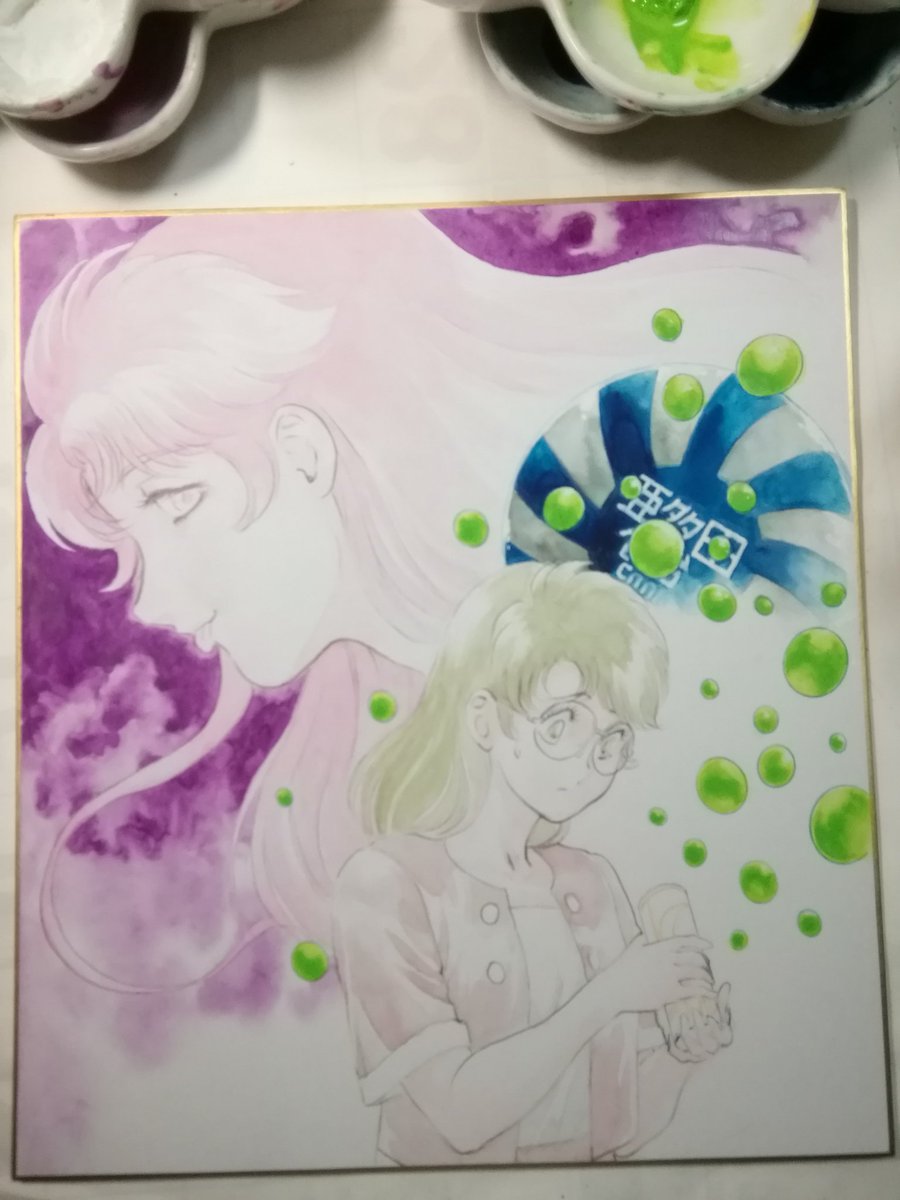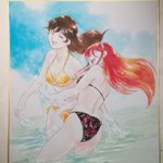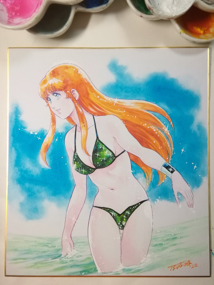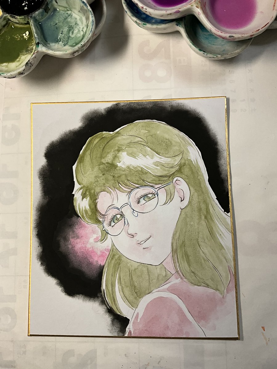 #岡崎つぐお彩色イラスト色紙 6月受注分最後の三枚の彩色完了しました。 週明けに発送手配する予定です。 ちなみに今月分からの受注は特に締切を設けませんので、ご希望の方はDMにてお声がけくださいませ。