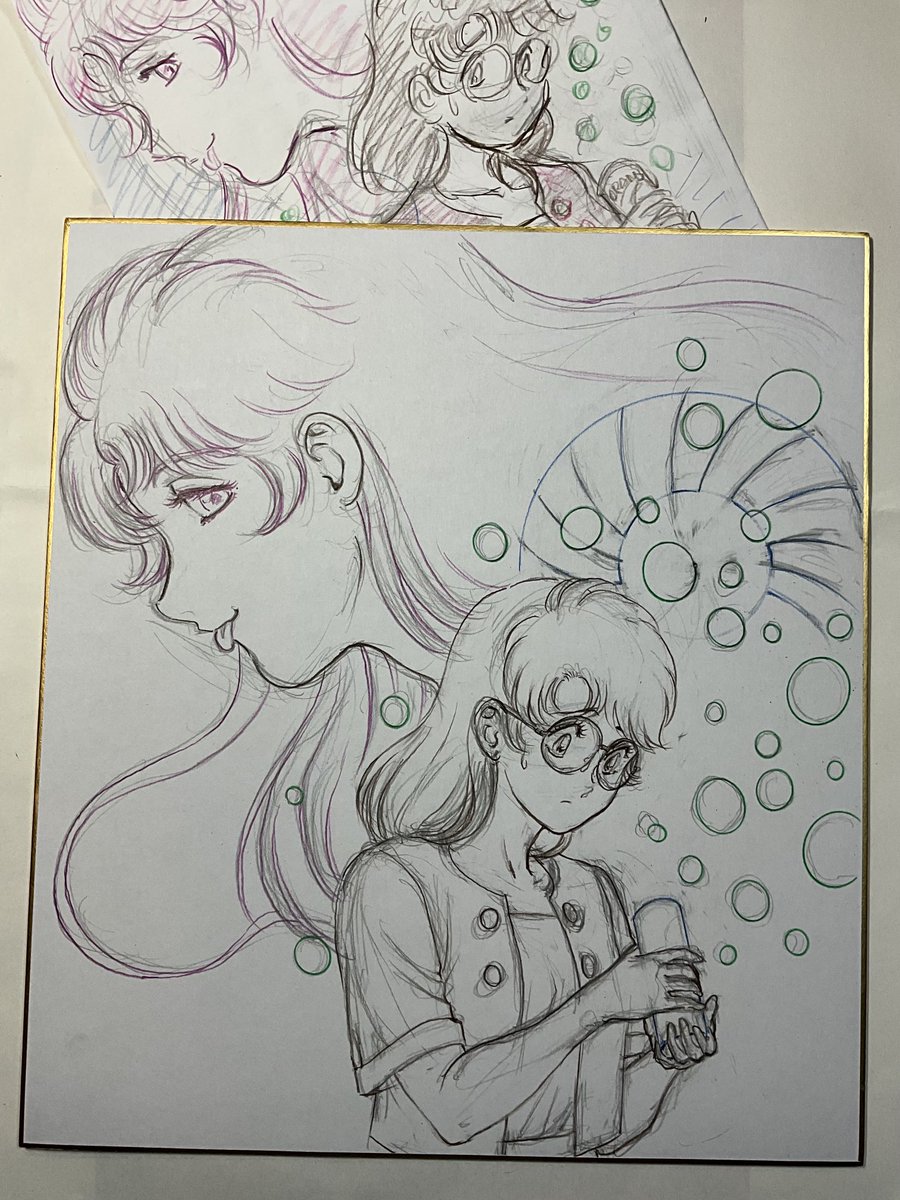 #岡崎つぐお彩色イラスト色紙 受注確定の三枚、ラフが出来ました。 明日は下絵から下塗りに入る予定です。 現在のところ今月受注確定分はこれだけですので、色紙製作には比較的余裕がございます。 拙作色紙をご希望の方がいらっしゃいましたらDMにてお声掛けくださいませ。