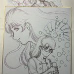 #岡崎つぐお彩色イラスト色紙 6月受注分のラスト3枚の下絵が入りました。 明日から彩色作業に入る予定です。 同時に7月の受注アナウンスもさせて頂きます…が、今回からは受注締切の条件を取らずに、ゆるく緩慢な形でその月毎の仕事都合で適宜受付させて頂きますので、何卒よろしくお願いいたします。