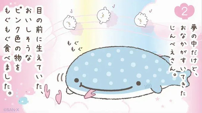 ✨ #岩下の新生姜 × #じんべえさん ✨ ストーリー② 夢の中だけど、おなかがすいてきたじんべえさん。目の前に生えていた、おいしそうなピンク色の物をもぐもぐ食べました。 san-x.co.jp/blog/toretate/…