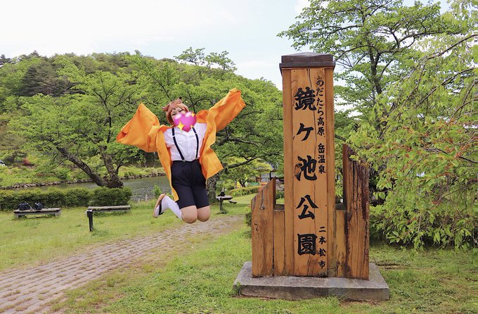 【コスプレ】 漫画:ヘタリア World☆Stars 2代目ニコニコ共和国 ここは鏡ヶ池公園だよ!! とーーーっても大きな池とお山がとっても綺麗なんだ✨✨ 散歩するのにとっても良いね^ ^ 撮影場所‥岳温泉 鏡ヶ池公園 #岳コス #ヘタクラさんと繋がりたい