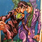 #JOJO版深夜の真剣お絵描き60分一本勝負 お題「青藍色」 「桃花色」 「若葉色」 次の実写版で「岸辺露伴グッチへ行く」が来たら…という妄想。 泉ちゃんがブティックで着替えるのに付き合わされる露伴先生です🛍️ #岸辺露伴は動かない