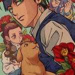 こちらの作品も、映画「#岸辺露伴ルーヴルへ行く」の劇中画として使用されました。 江戸時代という設定なので浮世絵風にしようかという話もあったのですが、それはあくまでも当時の流行りとしてあっただけで、頂相などの肖像画に見られる写実的な表現は、既にこの時代にも存在していました。 ↓