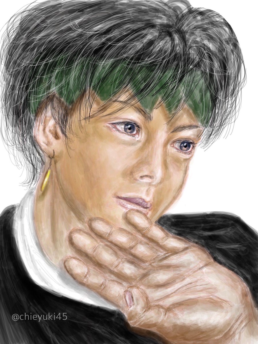 こちらは映画「#岸辺露伴ルーヴルへ行く」で、露伴が奈々瀬を思い出しながら筆で描いていた絵です。 露伴の記憶の中の奈々瀬ということで、ディテールは曖昧に、朧気で儚げな雰囲気の絵にしました。 その為本来であればこの角度ですと唇などが頬越しに見えるのですが、あえて端折っています。 ↓