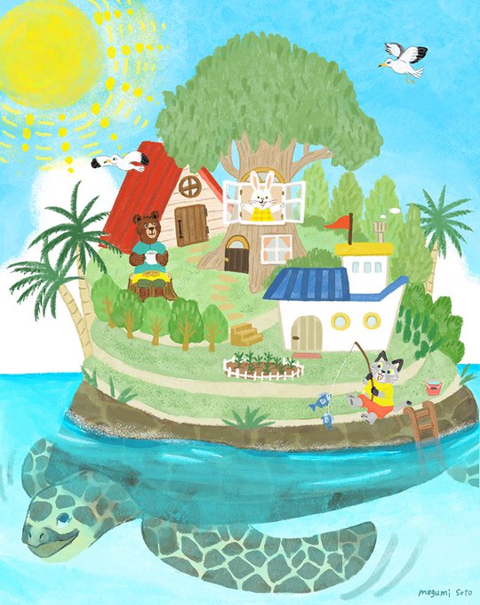 泳ぎが下手って聞いたので。 #サカバンバスピス #島 #オリジナルイラスト #illustration #イラスト #デジタルイラスト #創作 #artworks #illust #イラスト好きな人と繋がりたい