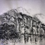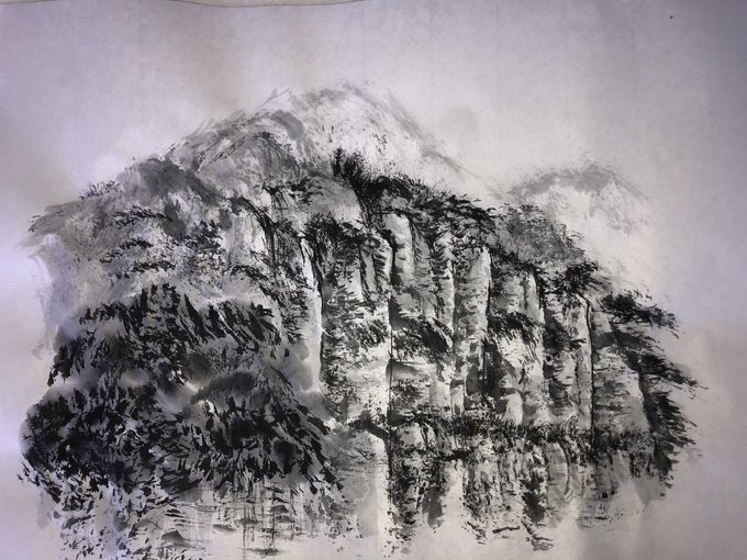 崖の部分を塗ったところ迄です。 #みんなのSNSなんでも展示会2022 #みんなで楽しむTwitter展覧会 #art #芸術の輪 #ART_RT #美術ネットワーク #お正月 #絵描きさんと繋がりたい #崖 #松 #日本画 #太陽