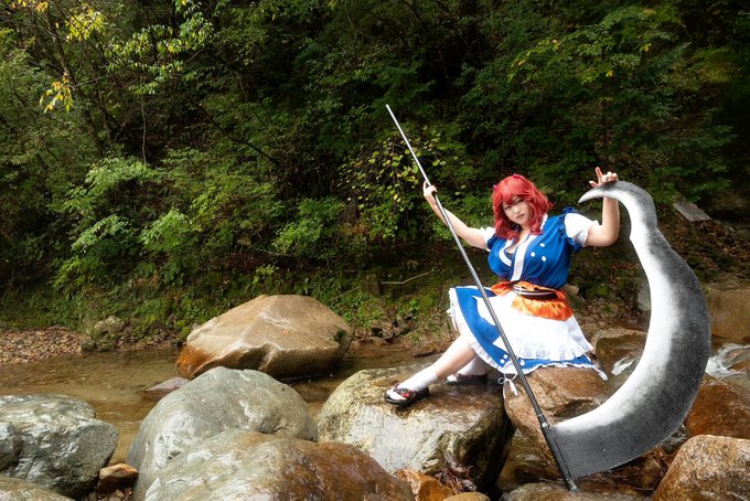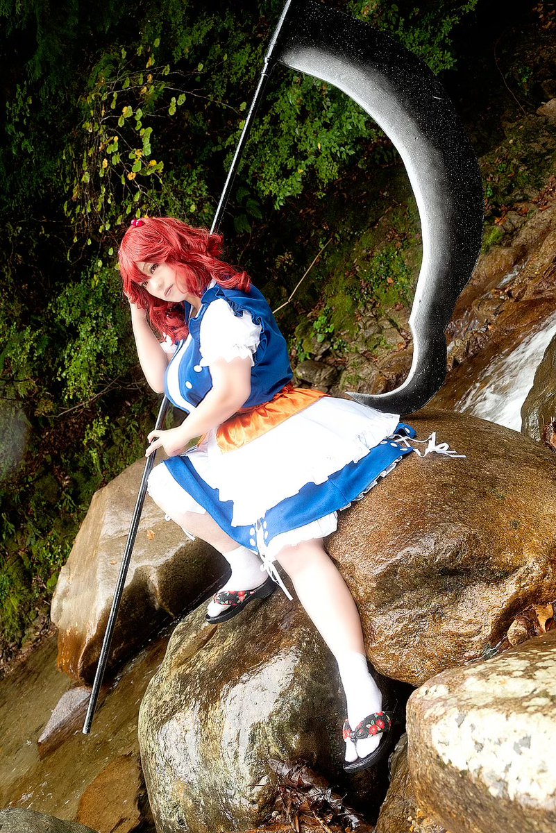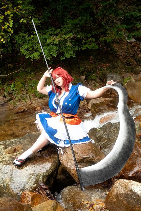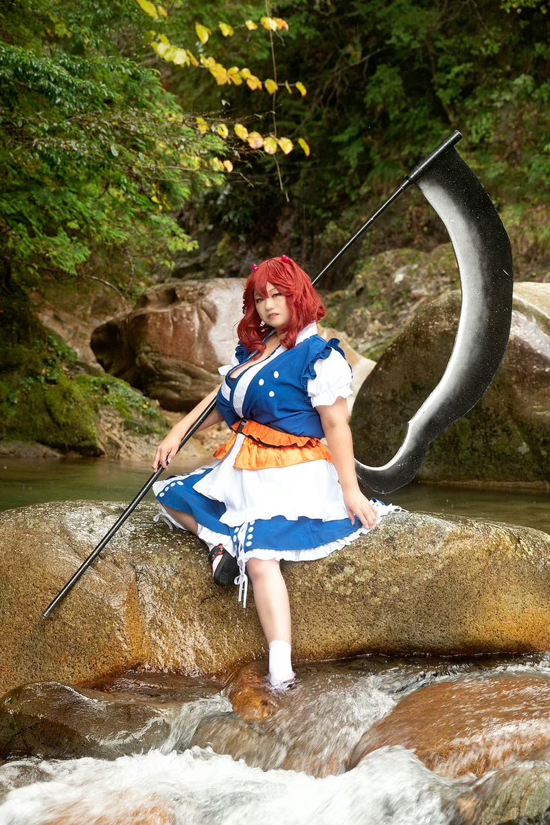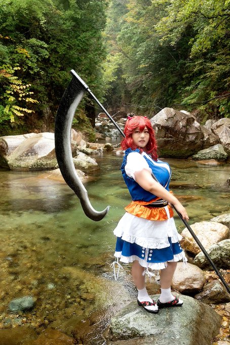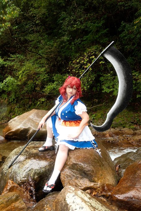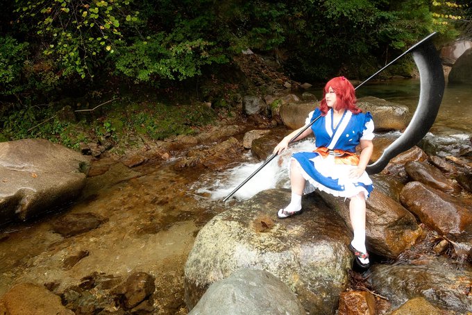 【Cosplay】 ん!? アタシを呼んだのか? •┈┈┈••✦☪︎✦••┈┈┈• ・小野塚 小町 / 東方プロジェクト Photo by モケモケ様(@boheusagi ) 大鎌造形 / ふくちゃん(@masa_juke ) #板取キャンプ場 #川ロケ撮影 #cosplay #東方プロジェクトコスプレ #小野塚小町コスプレ