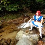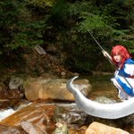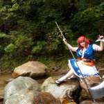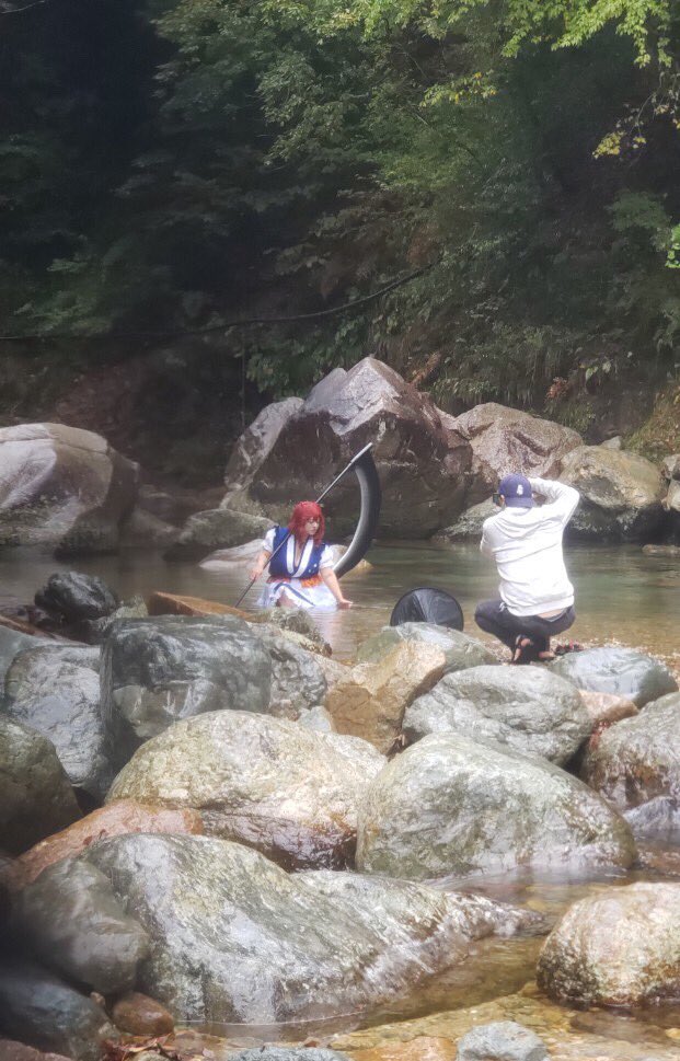 体感気温10℃くらい 小雨降る中 川に浸かる… カメラマンさんもびしょ濡れ💦 この後 温水洗浄便座の温かさに癒やされたのは言うまでもないw #東方プロジェクトコスプレ #小野塚小町コスプレ #板取キャンプ場 #川ロケ撮影