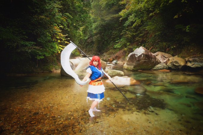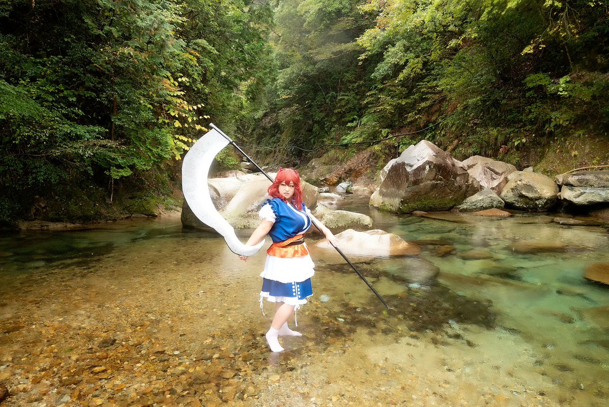 【Cosplay】 あの世とこの世の狭間 この水面がアタシの居場所… •┈┈┈••✦☪︎✦••┈┈┈• ・小野塚 小町 / 東方プロジェクト Photo by モケモケ様(@boheusagi ) 大鎌造形 / ふくちゃん(@masa_juke ) #板取キャンプ場 #川ロケ撮影 #東方プロジェクトコスプレ #小野塚小町コスプレ