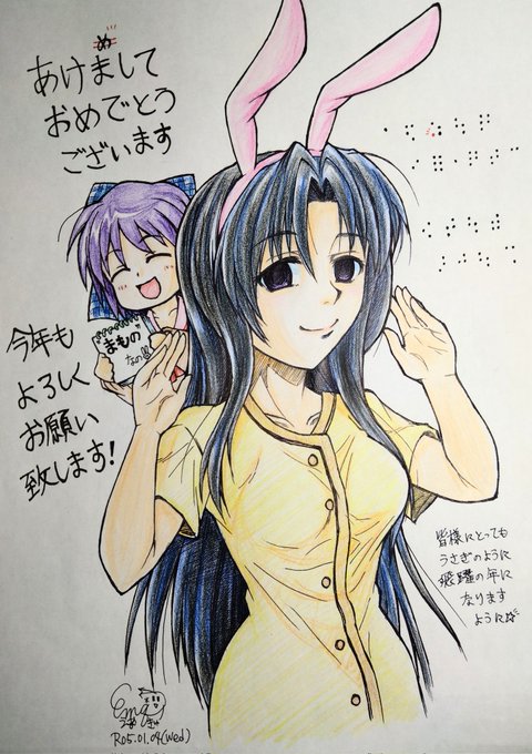 遅れ馳せながら 年賀イラスト完成したので 改めまして、 あけめして おめでとうございます✨ 今年もよろしく お願い致します🙇♀ ONE.リブートも楽しみ!🌇 #2023年賀絵 #2023年賀イラスト #HappyNewYear2023 #ONEリメイク #川名みさき