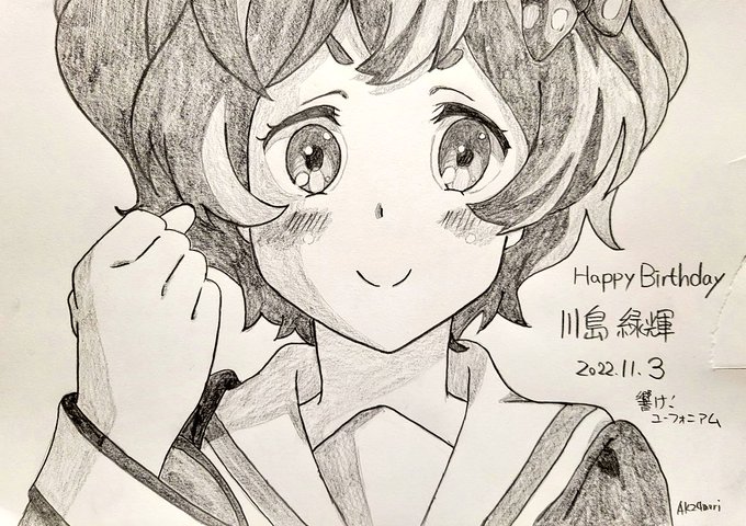 焼酎が効いて寝落ち寸前ですが… 11月3日は川島緑輝の誕生日!と言うわけで、急ぎお祝い絵を描きました!酔っ払ってヘロヘロですが〜 #川島緑輝生誕祭2021 #響けユーフォニアム #川島緑輝