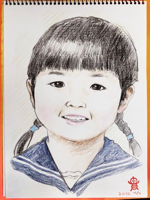川崎市民プラザ「わくわく秋まつり」での似顔絵、お客様に許可いただきアップ!✍️😊 セーラー服が似合う5歳くらいのお子ちゃま☺️ 描いてるところを興味津々で見詰めてたのが可愛かったです🥰 #川崎市民プラザ #似顔絵 #色鉛筆画 #イラスト #絵描きさんと繫がりたい #イラスト好きさんと繋がりたい