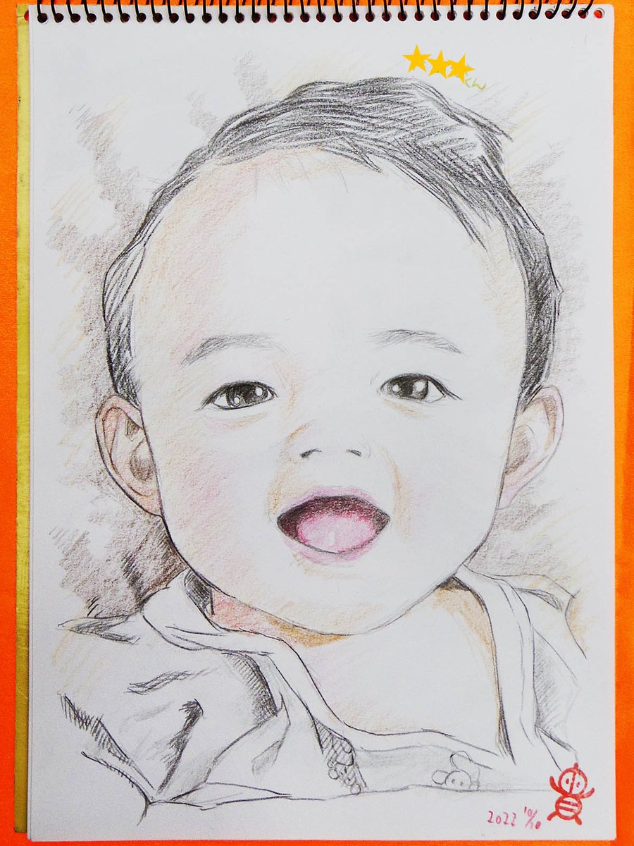 川崎市民プラザ「わくわく秋まつり」での似顔絵、お客様に許可いただきアップ!✍️😊 お写真からお描きした、あかちゃ~ん!💕👶💕 輝く笑顔✨お写真が既に奇跡の一枚でした✨ #川崎市民プラザ #似顔絵 #色鉛筆画 #イラスト #絵描きさんと繫がりたい #イラスト好きさんと繋がりたい