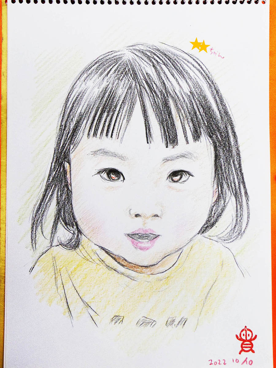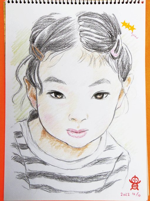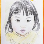 川崎市民プラザ「わくわく秋まつり」での似顔絵、お客様に許可いただきアップ!✍️😊 こちらも小さな女の子さん、とても上手にモデルさんしてくれました♪ 黒い瞳が美しかった✨ #川崎市民プラザ #似顔絵 #色鉛筆画 #イラスト #絵描きさんと繫がりたい #イラスト好きさんと繋がりたい