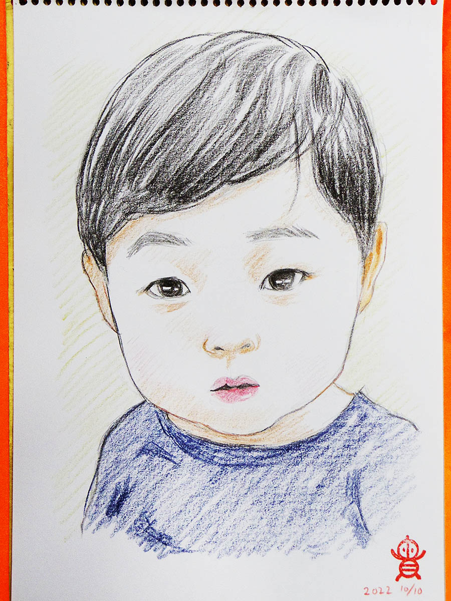 川崎市民プラザ「わくわく秋まつり」での似顔絵、お客様に許可いただきアップ!✍️😊 その場でお写真撮ってお描きした小さな男の子♪ すごい元気で変顔連発するので普通の表情で撮るのに一苦労🤣 #川崎市民プラザ #似顔絵 #色鉛筆画 #イラスト #絵描きさんと繫がりたい #イラスト好きさんと繋がりたい