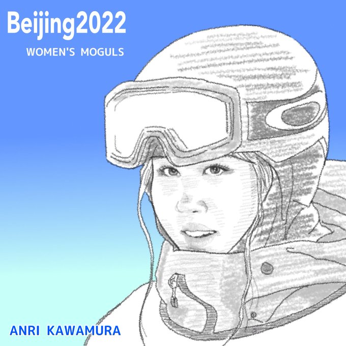 川村あんり選手、立派な結果でした👏 今季W杯、4年後のオリンピック頑張って下さい😄👍 #川村あんり @Anri_kawamura #北京2022オリンピック #Beijing2022 #女子モーグル #落書き #イラスト