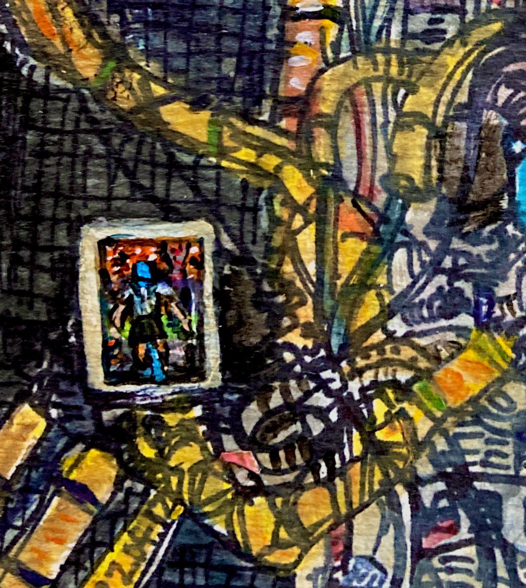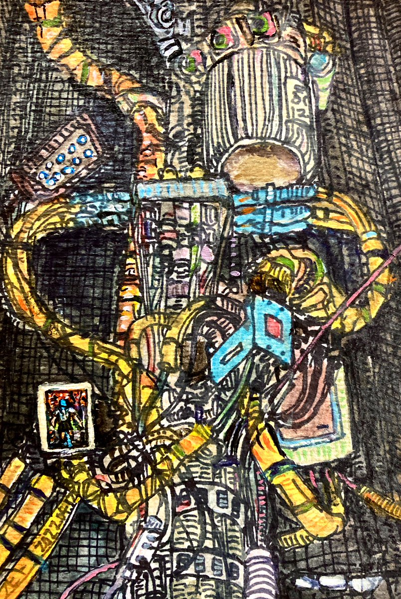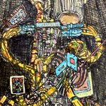 『道路工事』 息子とのお散歩その2 ちょうど道路工事をしていたので見学。 ドッドッドッ!!息子の『まだ見る😠』に付き合ってしばらく観察しました。 (写真を元に15分) #お絵描き好きさんと繋がりたい #色鉛筆イラスト #クロッキー #イラスト好きさんと繋がりたい #工事 #男の子ママ