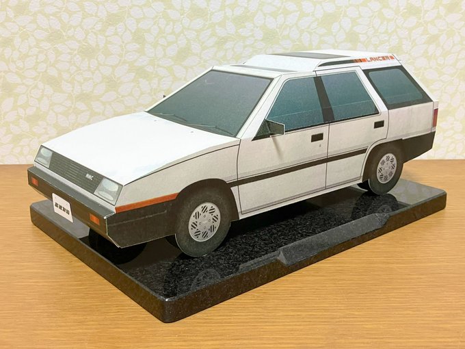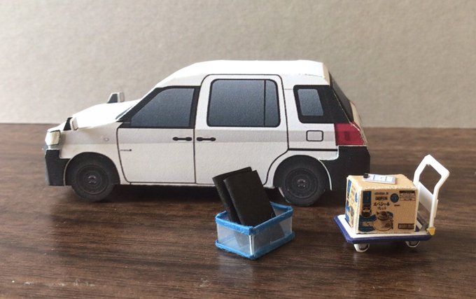 もう、なにかが始まっている。工作所以リミテッドヴィンテージ化第一弾。1/64スケールフルスクラッチ運搬用台車が完成。今までのツイートはこれのパーツでした。ランサーワゴンとの組み合わせはイメージです。 #ペーパークラフト #ペーパーモデル #papercraft #高速有鉛デラックス #工作所以 #台車