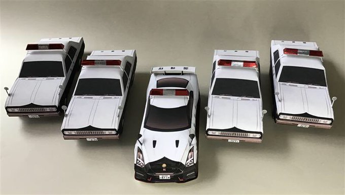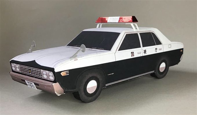 高速有鉛デラックス誌のペーパーモデル。230セドリックパトカーをほぼそのままのサイズで作成。フェンダーミラーと散光式パトライトを自作パーツに置き換えのみ。 #ペーパークラフト #ペーパーモデル #papercraft #高速有鉛デラックス #工作所以 #セドリック #パトカー