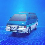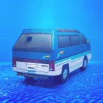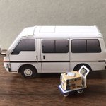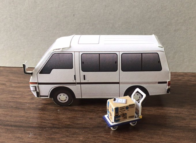 高速有鉛デラックス誌のペーパーモデルを1/64スケールに変更。JPNタクシーのバン仕様で遊びます。車体は仮組み。書類用クリアファイルで作ったコンテナや小物を追加。 #ペーパークラフト #papercraft #高速有鉛デラックス #工作所以