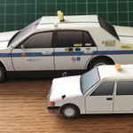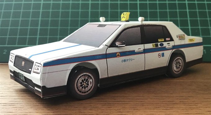 Twitterのアイコンに使っている高速有鉛デラックス誌のペーパーモデルのトヨタセンチュリーGRMNを1/40スケール東個協カラー個人タクシーにしました。試作的な意味合いなのでインテリアは無し。お手軽バリエーション。 #ペーパークラフト #ペーパーモデル #papercraft #高速有鉛デラックス #工作所以