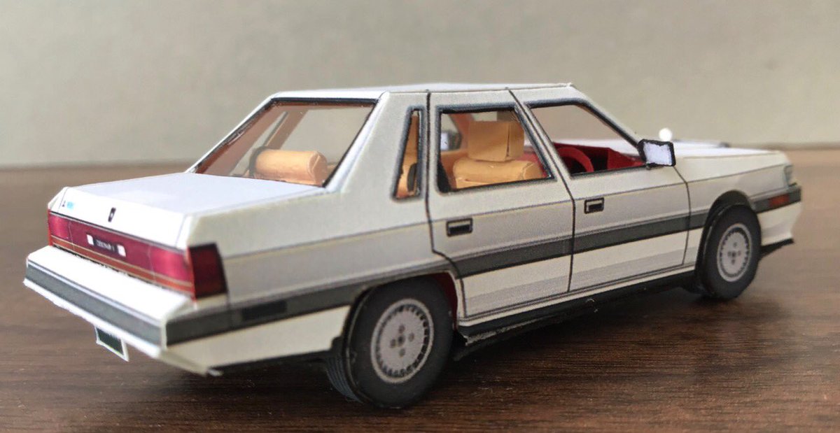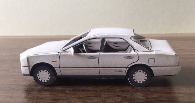 高速有鉛デラックス誌のペーパーモデルを1/64スケールに変更した1986年式三菱デボネアV3000ロイヤルエクストラ。どこに手を入れたかはご想像ください。 #ペーパークラフト #papercraft #高速有鉛デラックス #工作所以
