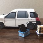 写真はイメージです。バインダーは荷物の上に置いたり、助手席やインパネ上にポン置きしたりして自由にお楽しみください。肝心の車両は未完成です。 #ペーパークラフト #ペーパーモデル #papercraft #紙工作 #高速有鉛デラックス #工作所以