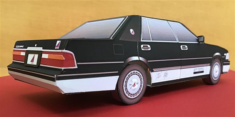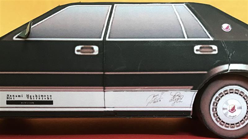 高速有鉛デラックス誌のペーパーモデルを1/24スケールに変更してセドリックブロアムL乃木坂46バージョン。オリジナルとの変更点はご想像ください。ボデーは固定してあるのでリムジンには変形しません。 #ペーパークラフト #papercraft #高速有鉛デラックス #工作所以 #日産セドリック #乃木坂46