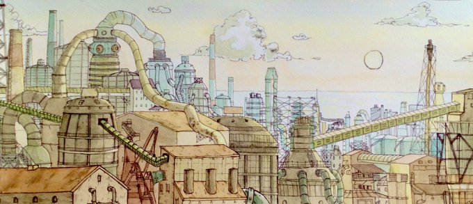 「ココロノファクトリー」 #NECファシリティーズ さんと #パラリンアート さんの「夢の工場」がテーマのコンテストに応募しようと思っている絵です。 #水彩 #アート #工場 #NEC #絵が好きな人と繋がりたい #アートが好きな人と繋がりたい #みんなで楽しむTwitter展覧会 #art #watercolor #picture